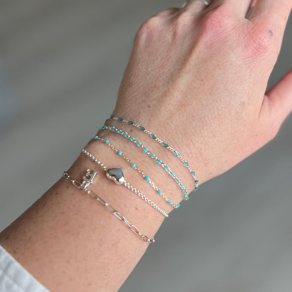 Our Charm Bracelets are a delightful way to carry your passions and adventures right on your wrist, always in sight and always inspiring. So go ahead, let your wrist sparkle with a piece that's as vibrant and multifaceted as you are, creating a cherished keepsake that evolves right along with your beautiful life.