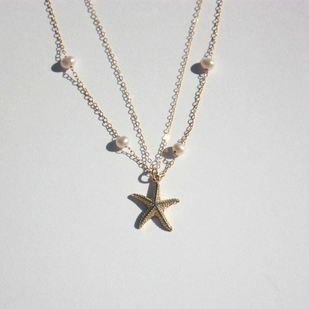 Adorn yourself with the elegant and timeless beauty of our Pearl Station Necklace. Crafted with lustrous white or peach freshwater pearls, delicately strung on a gold filled chain. Β This necklace exudes sophistication and exclusivity. Perfect for adding a touch of luxury to any outfit, this necklace is a must-have for the refined and tasteful.