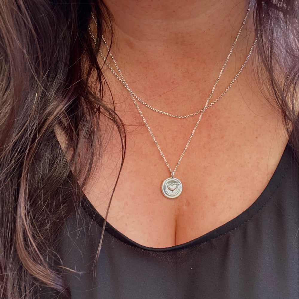 Center 3D Heart Coin Necklace